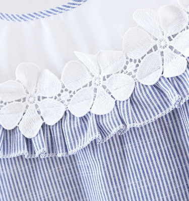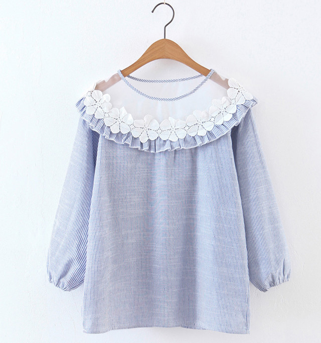 Ефектна жіноча блузка в смужку, прикрашена квітами, рукав на резинці