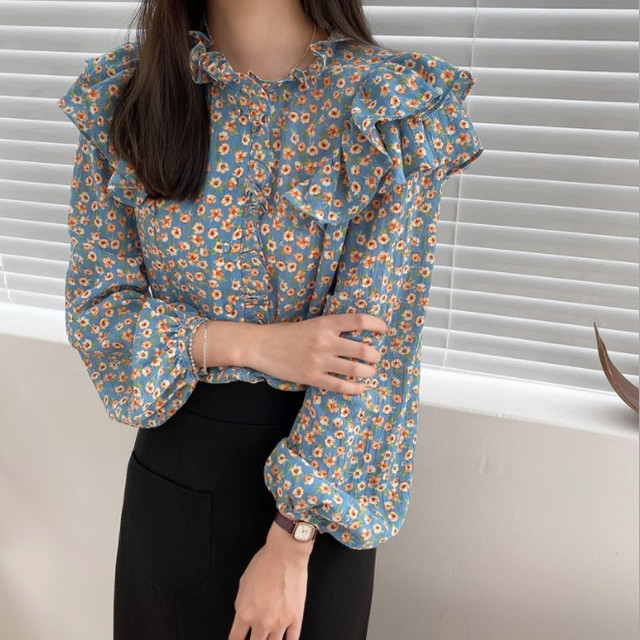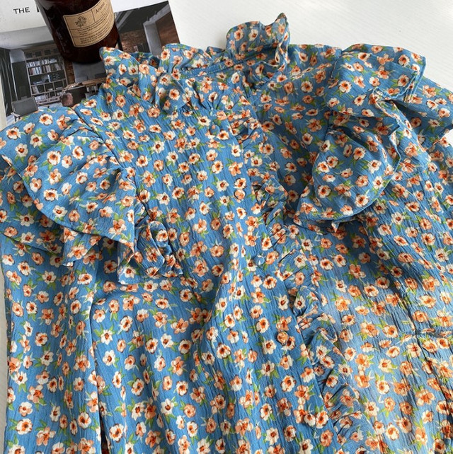 Блузка жіноча в ретро стилі з рюшами легка з квітами.