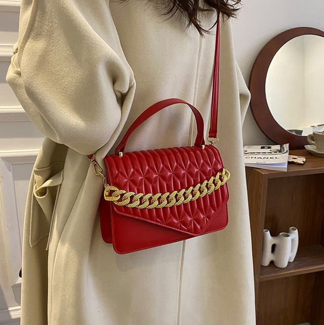 Невелика жіноча сумка через плече з декоративною ланцюжком. Сумка виконана з екошкіри. Сумка на одне відділення спереди декоративна ланцюжок. Вгорі сумки маленька ручка для руки. сумка закривається на дві магнітні кнопки, ремінець на плече регулюється.